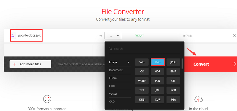 - Vous pouvez convertir n'importe quelle image depuis votre Dropbox, Google Drive ou votre ordinateur